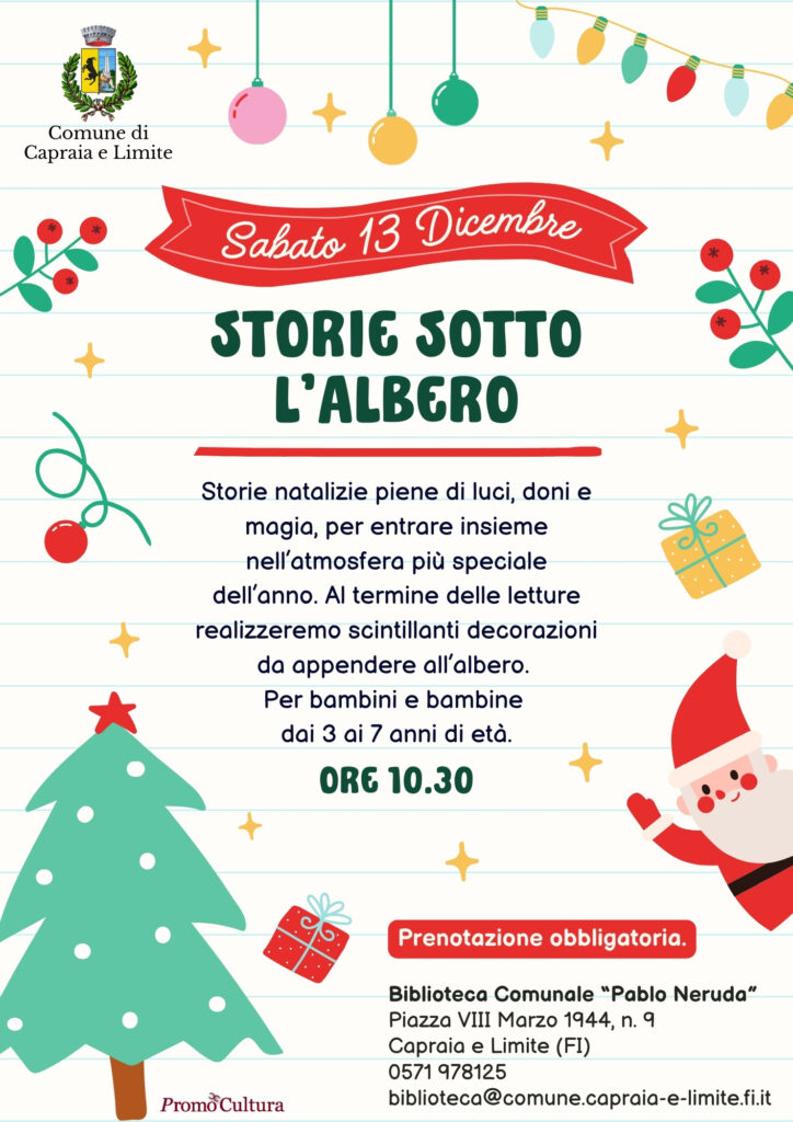 La Biblioteca Comunale “Pablo Neruda”, Sabato 13 dicembre 2025, ore 10.30, organizza: Letture natalizie piene di luci, doni e magia per entrare insieme nell’atmosfera più …