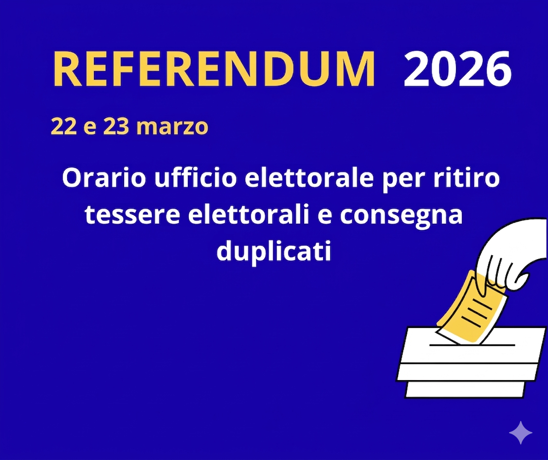 REFERENDUM COSTITUZIONALE 22 – 23 MARZO 2026 – Orario ufficio elettorale per ritiro tessere elettorali e consegna duplicati